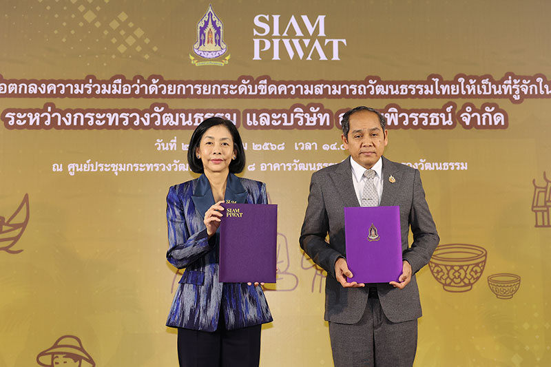 บริษัท สยามพิวรรธน์ จำกัด ผู้นำด้านการพัฒนาอสังหาริมทรัพย์และธุรกิจค้าปลีกชั้นนำของประเทศไทย ลงนามบันทึกข้อตกลงความร่วมมือ (MOU) กับกระทรวงวัฒนธรรม เพื่อร่วมส่งเสริมและพัฒนาอุตสาหกรรมวัฒนธรรมสร้างสรรค์ของไทยให้มีศักยภาพที่แข็งแกร่งขึ้น โดยต่อยอดจากมรดกภูมิปัญญาทางวัฒนธรรมของชาติ สู่การเป็นพลัง Soft Power บนเวทีโลกอย่างยั่งยืน