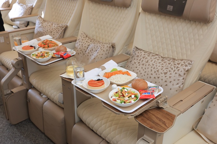 ขณะที่ ‘อาหาร’ จะเป็นเมนูอาหารประจำภูมิภาคที่ผ่านการคัดสรร เสิร์ฟมาบนชุดภาชนะกระเบื้องจาก Royal Doulton มีรายการเครื่องดื่มที่หลากหลายมากขึ้น และไวน์วินเทจที่เสิร์ฟเช่นเดียวกับห้องโดยสารชั้นธุรกิจ
