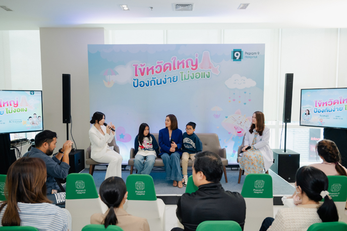 โรงพยาบาลพระรามเก้า จึงจัดงานรณรงค์การป้องกันอย่างจริงจังพร้อมเปิดตัวนวัตกรรมป้องกันไข้หวัดใหญ่แบบพ่นจมูก โดยมีกุมารแพทย์ผู้เชี่ยวชาญ 3 ท่าน ได้แก่ รศ.พญ.รวีรัตน์ สิชฌรังษี กุมารแพทย์ผู้ชำนาญการ ด้านโรคภูมิแพ้และภูมิคุ้มกัน รพ.พระรามเก้า, พญ.พวงทอง บุณยธรรมา กุมารแพทย์ผู้ชำนาญการด้านโรคระบบประสาทในเด็ก รพ.พระรามเก้า พญ.นงนภัส เก้าเอี้ยน กุมารแพทย์ผู้ชำนาญการด้านโรคระบบทางเดินหายใจ รพ.พระรามเก้า ที่มาพร้อมกับ คุณจูน-กษมา ศิลาชัย และ น้องออกู้ด-ดช.นครินทร์ ศิลาชัย, น้องออเกรซ-ดญ.ศิริกร ศิลาชัย ร่วมแชร์เคล็ดลับการดูแลลูกให้แข็งแรง ห่างไกลไข้หวัดใหญ่ แบบทำได้จริงในทุกบ้าน เพราะ “ ไข้หวัดใหญ่ ป้องกันง่าย ไม่งอแง”