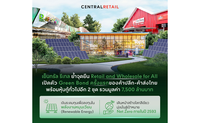 นายปเนต มหรรฆานุรักษ์ ประธานเจ้าหน้าที่บริหารสายงานการเงิน บริษัท เซ็นทรัล รีเทล คอร์ปอเรชั่น จำกัด (มหาชน) เปิดเผยว่า “การออก Green Bond ครั้งแรกของเซ็นทรัล รีเทล รวมถึงหุ้นกู้ทั่วไปอีก 2 ชุด ได้รับการตอบรับเป็นอย่างดีจากผู้ลงทุน ซึ่งการเสนอขายครั้งนี้มียอดจองเข้ามามากกว่า 4 เท่า นับเป็นก้าวสำคัญที่สะท้อนถึงความมุ่งมั่นของ CRC ในการขับเคลื่อนองค์กรสู่การเป็น “Retail and Wholesale for All” ภายใต้เป้าหมายที่จะ “เติบโตไปด้วยกัน” ด้วยการดำเนินธุรกิจบนปรัชญา CRC Care โดยการออก Green Bond มูลค่า 1,000 ล้านบาท ในครั้งนี้เป็นไปตามหลักเกณฑ์การระดมทุนเพื่อความยั่งยืน (Sustainable Finance Framework) ของบริษัท เซ็นทรัล รีเทล คอร์ปอเรชั่น จำกัด (มหาชน) และได้ผ่านการให้ความเห็นและรับรองโดย DNV (Thailand) Co., Ltd. ในฐานะผู้ประเมินอิสระภายนอก (Second Party Opinion) โดยมีวัตถุประสงค์ในการนำเงินที่ได้จากการเสนอขาย Green Bond ไปใช้ทดแทนเงินลงทุน หรือค่าใช้จ่ายเดิมของบริษัทฯ ที่ได้ใช้ลงทุนในโครงการที่เกี่ยวข้องกับพลังงานหมุนเวียน (Renewable energy) โดยเฉพาะการลงทุนในโครงการพลังงานแสงอาทิตย์ ผ่านการติดตั้งโซลาร์เซลล์บนหลังคาของห้างสรรพสินค้าเซ็นทรัล, ห้างสรรพสินค้าโรบินสัน, ท็อปส์, ไทวัสดุ และศูนย์การค้าโรบินสันไลฟ์สไตล์ เพื่อเพิ่มสัดส่วนการใช้พลังงานสะอาด ซึ่งเป็นส่วนสำคัญในการขับเคลื่อนกลยุทธ์ด้านสิ่งแวดล้อม (ReNEW) ของเซ็นทรัล รีเทล โดยคาดว่าสามารถผลิตไฟฟ้าได้มากกว่า 90,000 MWh/ปี เทียบเท่ากับการลดการปล่อยก๊าซเรือนกระจกมากกว่า 45,000 ตันต่อปี และในส่วนของเงินอีก 6,500 ล้านบาทที่ได้รับจากการออกหุ้นกู้ทั่วไปอีก 2 ชุด จะถูกนำไปใช้ชำระคืนเงินกู้บางส่วนแก่สถาบันการเงิน