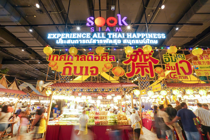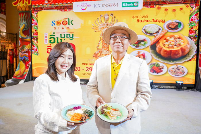 คุณบัญชา ฉันทดิลก กรรมการผู้จัดการโครงการสุขสยาม เผยว่า “เทศกาลกินเจปีนี้ เราอยากให้ผู้มาเยือนได้สัมผัสรสชาติแห่งความสุข ผ่านอาหารเจที่ดีต่อใจและดีต่อสุขภาพ ที่ให้รสชาติแบบต้นตำรับแท้ ถึงรสถึงเครื่องเหมือนรับประทานเมนูโปรดที่คุ้นเคย ผ่านเมนูอาหารเจ 4 ภาค ทั้งเหนือ กลาง อีสาน ใต้ และปีนี้ยังพิเศษกว่าเดิมด้วยการรังสรรค์เมนูเจฟิวชันทั้งสไตล์เอเชียและยุโรปที่มีให้เลือกมากมาย เพื่อให้ทุกคนได้อิ่มบุญไปพร้อมกับอิ่มอร่อยอย่างแท้จริง”