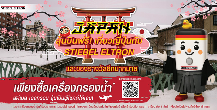 ทั้งนี้ เพื่อขานรับกระแสการเติบโตของตลาดพร้อมปลุกกำลังซื้อผู้บริโภคช่วงไตรมาสสุดท้ายของปี สตีเบล เอลทรอน ได้จัดโปรโมชันพิเศษสำหรับลูกค้าเมื่อซื้อผลิตภัณฑ์เครื่องกรองน้ำ ต่อที่หนึ่ง! รับส่วนลด 2,000 บาท สำหรับเครื่องกรองน้ำรุ่น FOUNTAIN 7S และส่วนลด 1,000 บาท สำหรับเครื่องกรองน้ำรุ่น SNOW PRO ต่อที่สอง! ร่วมลุ้นเป็นผู้โชคดีกับกิจกรรม ‘ลุ้นบินฟรี เที่ยวญี่ปุ่นกับ STIEBEL ELTRON’ ชิงรางวัลใหญ่ ตั๋วเครื่องบินไป-กลับฮอกไกโด ประเทศญี่ปุ่น 2 ที่นั่ง จำนวน 1 รางวัล พร้อมรางวัลผลิตภัณฑ์เครื่องทำน้ำอุ่นและเครื่องกรองน้ำจากสตีเบล เอลทรอน จำนวน 19 รางวัล รวมมูลค่ากว่า 160,000 บาท เมื่อซื้อเครื่องกรองน้ำรุ่นที่ร่วมรายการและลงทะเบียนรับประกัน e-Warranty 1 เครื่อง ต่อ 1 สิทธิ์ ระหว่างวันนี้ – 31 ธันวาคม 2568 ทั้งนี้ คาดว่าแคมเปญ ดังกล่าวจะกระตุ้นยอดขายเครื่องกรองน้ำของบริษัทฯ ได้ราว 30%