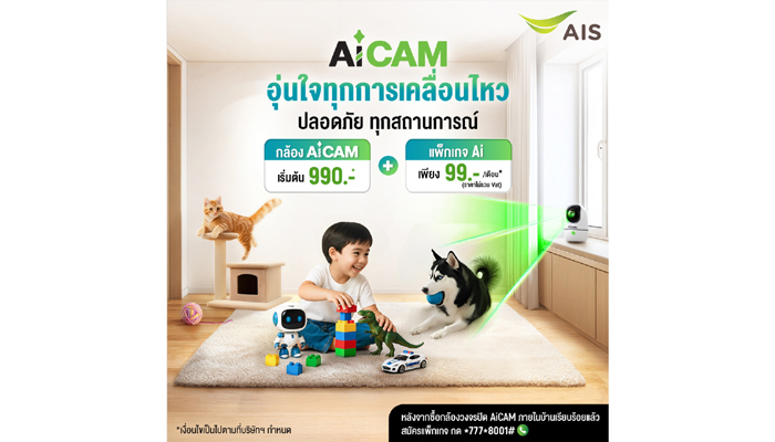 เอไอเอสยกระดับความปลอดภัย ด้วยกล้องอัจฉริยะ AiCAM จากกล้องวงจรปิดทั่วไป สู่การเป็นผู้ช่วยอัจฉริยะในชีวิตประจำวัน (AI for Everyday Living) พร้อมเปิดตัว 2 ฟังก์ชัน AI ใหม่ล่าสุด ได้แก่ AI Smart Child Care – ฟังก์ชันดูแลเด็กภายในบ้าน ด้วยเทคโนโลยี AI ที่สามารถวิเคราะห์พฤติกรรมหรือความผิดปกติ และแจ้งเตือนเมื่อพบเด็กออกนอกจากพื้นที่ที่กำหนดไว้ พร้อมบันทึกกิจกรรมประจำวัน เพื่อช่วยให้ผู้ปกครองสามารถติดตามและดูแลบุตรหลานได้อย่างมั่นใจ และ AI Smart Pet Care – ฟังก์ชันดูแลสัตว์เลี้ยงอัจฉริยะ ที่สามารถจดจำใบหน้าได้ ตรวจจับพฤติกรรม วิเคราะห์ความผิดปกติ รวมถึงแจ้งเตือนเมื่อสัตว์เลี้ยงออกนอกพื้นที่หรือมีอาการผิดปกติ เพื่อให้เจ้าของได้รับข้อมูลและการแจ้งเตือนแบบเรียลไทม์