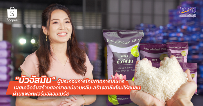 “ข้าวหอมบัวจัสมิน” แบรนด์ข้าวสาร SME จากกาญจนบุรี ที่ต่อยอดธุรกิจครอบครัวกว่า 40 ปี สู่การขายออนไลน์เต็มรูปแบบ สร้างยอดขายจากหลักหน่วย สู่หลักพันออเดอร์ต่อวัน คว้ารางวัล DBD Influencer Award และสร้างรายได้ยั่งยืนให้คนในชุมชนจากความสำเร็จของบัวจัสมิน สู่การคืนกลับให้ชุมชน พร้อมทั้งส่งต่อความรักด้วยข้าวสารและสามารถเติบโตอย่างยั่งยืนได้บน Shopee