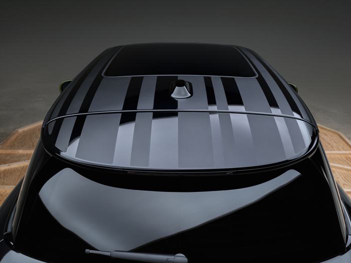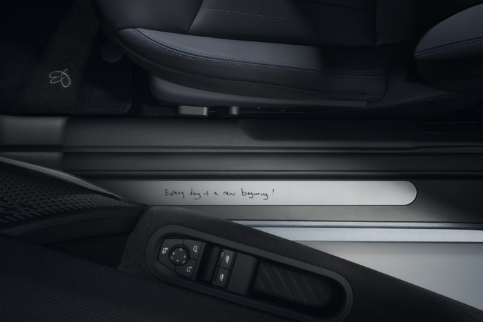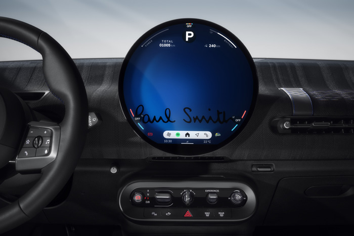 บริเวณหน้าจอกลมตรงกลางคอนโซลยังสามารถปรับเปลี่ยนพื้นหลังได้ถึงสามแบบในโหมด Personal Mode โดยแต่ละแบบออกแบบมาพิเศษในสไตล์ของ Paul Smith ซึ่งรายละเอียดเล็กๆ ที่ซ่อนอยู่ภายในยังสะท้อนถึงสไตล์ในความเป็นอังกฤษที่แฝงไว้ด้วยความสนุกตามแบบฉบับของ Paul Smith เช่น เมื่อเปิดประตูรถผู้ขับและผู้โดยสารจะได้รับการต้อนรับด้วยข้อความลายมือคำว่า “Hello” ที่ฉายแสงลงบนพื้นด้านล่าง พร้อมข้อความที่เขียนไว้บนขอบประตูว่า “Everyday is a new beginning” ที่ถ่ายทอดทัศนคติเชิงบวกของทั้งสองแบรนด์ได้อย่างลงตัว ปิดท้ายด้วยกราฟิกรูป “กระต่าย” ที่วาดด้วยมือโดยพอล สมิธเองบนพรมพื้นรถ เติมเสน่ห์เฉพาะตัวให้กับห้องโดยสารอย่างสมบูรณ์แบบ