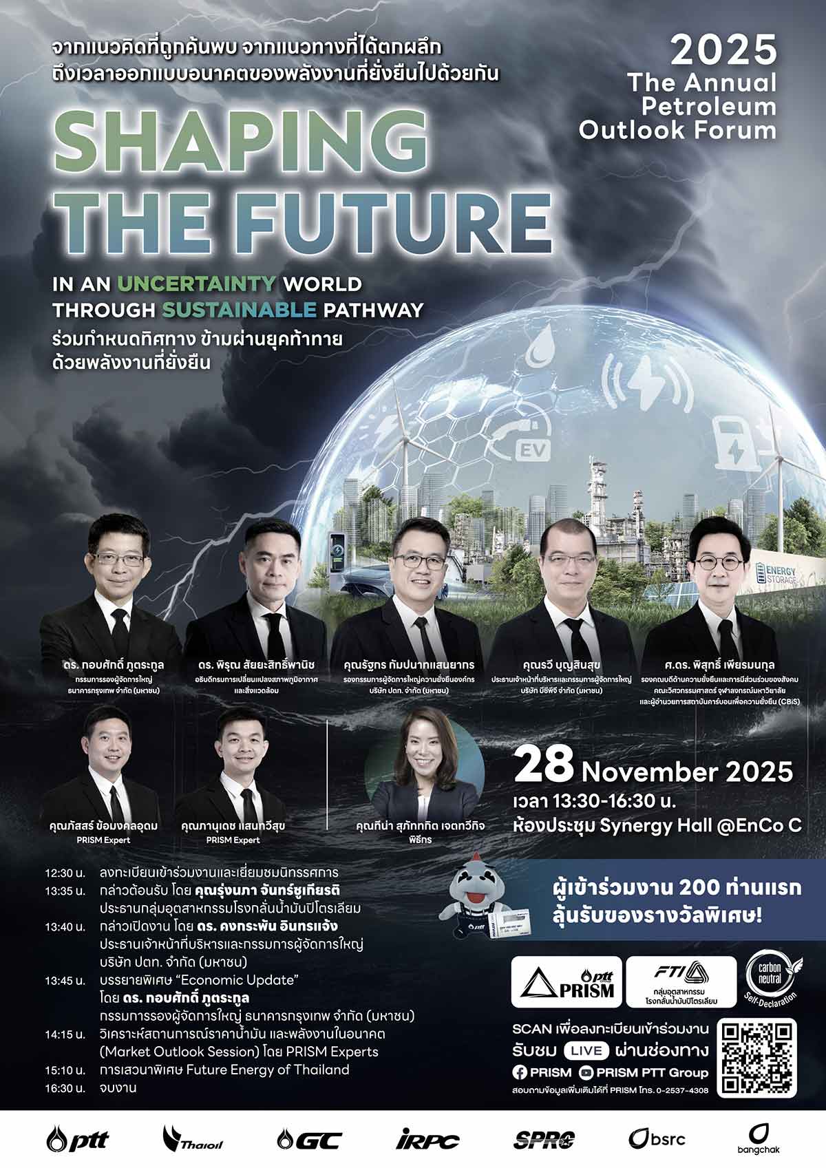ร่วมวิเคราะห์แนวโน้มเชิงลึกและรับฟังกลยุทธ์จากผู้เชี่ยวชาญทั้งในแวดวงพลังงาน การเงิน และ PRISM Expert จากกลุ่ม ปตท. ในงานสัมมนาแห่งปี