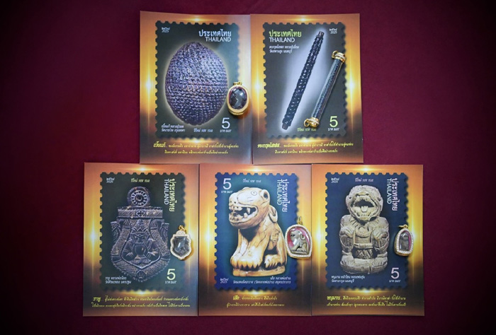 บริษัท ไปรษณีย์ไทย จำกัด เปิดตัวตราไปรษณียากรรุ่นพิเศษชุดปีใหม่ 2569 ภาพเบญจภาคีเครื่องราง ที่นำแรงบันดาลใจจากเครื่องรางไทยระดับตำนานทั้งห้า ได้แก่ 1. เสือ หลวงพ่อปาน 2. หนุมาน หลวงพ่อสุ่น 3. เบี้ยแก้ หลวงปู่รอด 4. ราหูกะลาแกะ หลวงพ่อน้อย 5. ตะกรุดมหาโสฬส หลวงปู่เอี่ยม มาถ่ายทอดเป็นผลงานศิลปะบนดวงแสตมป์อย่างวิจิตรงดงาม พร้อมจัดพิธีพุทธาภิเษกในวันที่ 5 พฤศจิกายน 2568 (ขึ้น 15 ค่ำ เดือน 12) ณ วัดมงคลโคธาวาส อำเภอคลองด่าน จังหวัดสมุทรปราการ เพื่อสื่อถึงคุณค่าความเป็นสิริมงคลในวาระขึ้นปีใหม่ ที่สะท้อนแนวคิด “มูเก็ตติ้ง – สื่อแห่งศรัทธา” ที่ไม่เพียงส่งต่อพลังบวก ความเป็นสิริมงคล และความภาคภูมิใจในมรดกทางจิตวิญญาณของไทย แต่ยังออกแบบให้เป็นเครื่องรางแห่งศรัทธาที่ทุกคนสามารถเข้าถึงได้อย่างทั่วถึง ไม่ว่าจะเก็บสะสม ตั้งบูชาในบ้าน หรือพกติดตัวเป็นสัญลักษณ์แห่งความโชคดี แสตมป์ชุดนี้จึงเป็นสื่อกลางที่ผสานศิลปะ วัฒนธรรม และความเชื่อ เข้าด้วยกันอย่างกลมกลืน