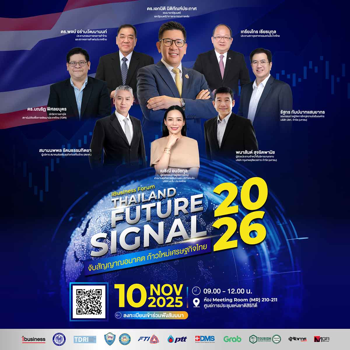 เชิญเข้าร่วมรับชม งานสัมมนา iBusiness Forum : Thailand Future Signal 2026 จับสัญญาณอนาคต ก้าวใหม่เศรษฐกิจไทย ทางออนไลน์ฟรี ไม่มีค่าใช้จ่าย