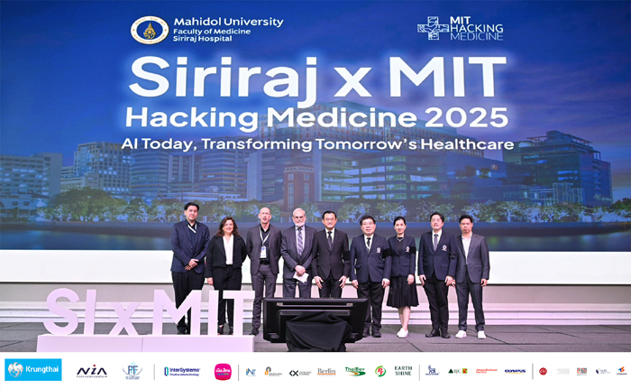 ศ. นพ.อภิชาติ อัศวมงคลกุล คณบดีคณะแพทยศาสตร์ศิริราชพยาบาล มหาวิทยาลัยมหิดล เปิดเผยว่า การจัดงาน Siriraj x MIT Hacking Medicine 2025 ซึ่งโรงพยาบาลศิริราช และ MIT Hacking Medicine ได้ร่วมกันจัดขึ้นต่อเนื่องเป็นปีที่ 2 ระหว่างวันที่ 31 ตุลาคม – 4 พฤศจิกายน 2568 ประสบผลสำเร็จลุล่วงไปด้วยดี โดยมีจำนวนผู้เข้าร่วมงานทั้งในกลุ่มผู้เข้าแข่งขัน เมนเทอร์ผู้ให้คำปรึกษา วิทยากร และผู้เข้าร่วมฟังการบรรยายเพิ่มขึ้นจากปีก่อนในทุกกิจกรรม