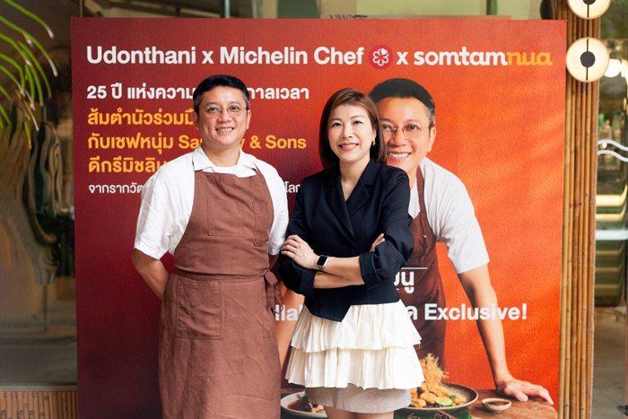 ส้มตำนัว (SOMTAMNUA) ความนัวที่ไร้กาลเวลา! ส้มตำรสชาติ Authentic จากจ.อุดรธานีที่ยังคงครองใจ สายแซ่บจากสาขาแรกซอย 5 สยามสแควร์ ฉลองครบรอบ 25 ปี อย่างยิ่งใหญ่ ด้วยการประกาศความร่วมมือครั้งประวัติศาสตร์ (Collaboration) กับ เชฟหนุ่ม-วีระวัฒน์ ตริยเสนวรรธน์ จากร้าน Samuay & Sons จังหวัดอุดรธานี ผู้บุกเบิกแนวคิด “Modern Esan Cuisine” สู่เวทีโลกและดีกรี Michelin 3 ปีซ้อน ทั้งคู่ร่วมกันจุดไฟวงการอาหารอีสานอีกครั้ง ด้วยการสร้างสรรค์ 3 เมนู Collaboration สุดเอ็กซ์คลูซีฟ ที่สะท้อนรากวัฒนธรรมอีสานแท้ ๆ ผสานกับความคิดสร้างสรรค์และเทคนิคการปรุงระดับโลก เพื่อมอบประสบการณ์อาหารอีสานในมิติที่ไม่เคยมี มาก่อน