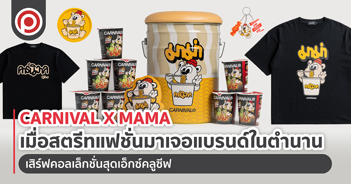 Carnival แบรนด์สตรีทแฟชั่นสัญชาติไทย ขวัญใจชาวแฟชั่นของคนยุคใหม่ มาเจอกับ “มาม่า” แบรนด์บะหมี่กึ่งสำเร็จรูปที่เป็นตำนานอยู่คู่คนไทยมาหลายทศวรรษ ทำให้การคอลแลบครั้งนี้น่าสนใจไม่น้อย ทำให้การร่วมมือกันครั้งนี้ช่วยเพิ่มภาพลักษณ์ที่ทันสมัย แล้วยังได้เสริมฐานลูกค้าซึ่งกันและกันอีกด้วย