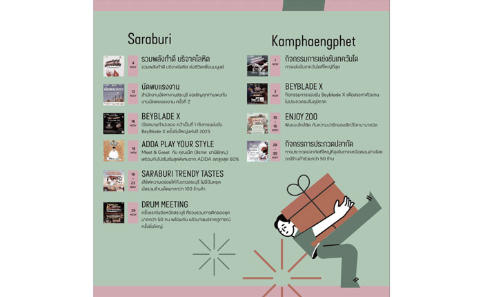 มาร่วมแบ่งปันความสุขในเดือนแห่งการให้ไปด้วยกันที่โรบินสันไลฟ์สไตล์ทุกสาขาทั่วประเทศ ตลอดเดือนพฤศจิกายน 2568 นี้ พร้อมเติมเต็มทุกวันของคุณให้มีรอยยิ้มและความหมายมากกว่าที่เคย