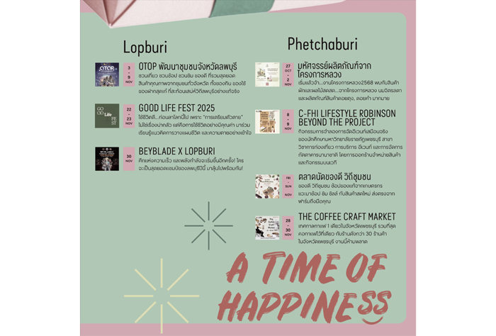 3 พ.ย.68–9 พ.ย. 68 ร่วมสนับสนุนสินค้าชุมชนในงาน OTOP พัฒนาชุมชนจังหวัดลพบุรีชวนเที่ยว ชวนช้อป ชวนชิม ของดีจากท้องถิ่น ทั้งอาหารพื้นบ้าน ของใช้ งานหัตถกรรม และของฝากสุดเก๋ที่สะท้อนเอกลักษณ์ความเป็นลพบุรีอย่างแท้จริง
