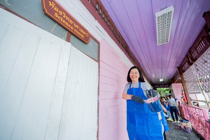 นางสาวเพียงจิต ศรีประสาธน์ รองประธานอาวุโสฝ่ายทรัพยากรบุคคลและบรรษัทสัมพันธ์ ประเทศไทยและอินโด ไชน่า บริษัท ซันโทรี่ เบเวอเรจ แอนด์ ฟู้ด (ประเทศไทย) จำกัด กล่าวเพิ่มเติมเกี่ยวกับกิจกรรมในปีนี้ว่า “การจัดกิจกรรม ‘One Suntory Helping Hands’ ถือเป็นอีกหนึ่งความสำเร็จจากการร่วมแรงร่วมใจกันของทั้งสองบริษัทในเครือซันโทรี่ ภายใต้วัฒนธรรมองค์กรที่ยึดมั่นในแนวคิด ‘Better Together’ ซึ่งตอกย้ำว่าทุกความร่วมมือ ไม่ว่าจะเล็กหรือใหญ่ ล้วนมีคุณค่าและสามารถขับเคลื่อนการเปลี่ยนแปลงในเชิงบวกให้เกิดขึ้นได้จริง สำหรับโรงเรียนวัดถั่วทองนั้น นอกจากการทาสีปรับปรุงอาคารเรียนแล้ว พนักงานจิตอาสาของเรายังร่วมกันปรับปรุงแปลงผักสวนครัวของโรงเรียน เพื่อให้น้อง ๆ ได้มีพื้นที่เรียนรู้ด้านการเกษตร และสามารถนำผักปลอดสารพิษที่ปลูกได้ไปประกอบอาหารกลางวัน ช่วยลดค่าใช้จ่ายด้านวัตถุดิบ ซึ่งโรงเรียนสามารถนำงบประมาณส่วนนี้ไปพัฒนาในด้านอื่น ๆ ต่อไป นอกจากนั้น เรายังได้จัดกิจกรรมสันทนาการที่เต็มไปด้วยความสนุกสนาน ควบคู่ไปกับการให้ความรู้เรื่องการคัดแยกขยะอย่างถูกต้อง เพื่อปลูกจิตสำนึกด้านการอนุรักษ์สิ่งแวดล้อมให้แก่เยาวชน ซึ่งไม่เพียงสร้างประโยชน์ให้กับสังคมเท่านั้น แต่ยังช่วยเสริมสร้างความผูกพันและความภาคภูมิใจของพนักงาน (Employee Engagement) ในการเป็นส่วนหนึ่งขององค์กรที่ใส่ใจต่อผู้คนและสิ่งแวดล้อม โดยสอดคล้องกับอีกหนึ่งค่านิยมองค์กรของเรา คือ ‘การเติบโตอย่างยั่งยืน’ (Growing for Good) ที่มุ่งมั่นสร้างการเปลี่ยนแปลงเชิงบวกให้กับสังคมและสิ่งแวดล้อม ควบคู่ไปกับการเติบโตขององค์กร”