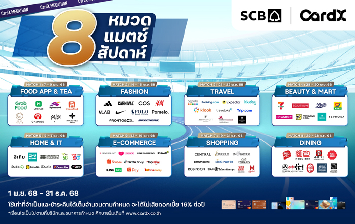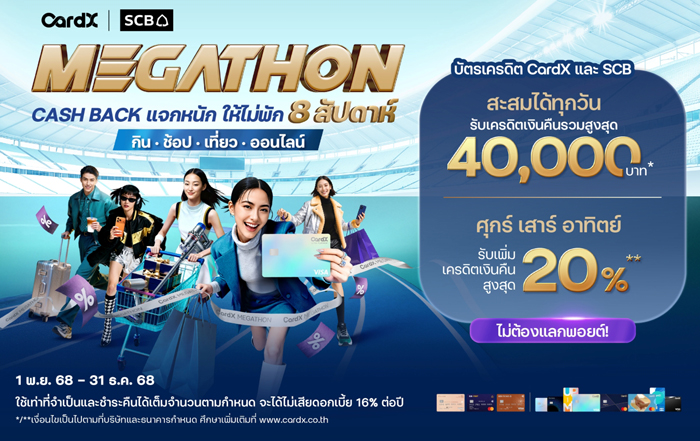 แคมเปญ ‘MEGATHON’ มอบสิทธิพิเศษ 2 คุ้มจัดเต็ม สำหรับลูกค้าบัตรเครดิต CardX และ SCB