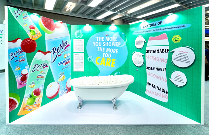 3.Sustainable Packaging – The More You Shower, The More You Care: เจาะลึกเบื้องหลังบรรจุภัณฑ์ที่ “แคร์” โลก ผ่านกรณีศึกษาของบีไนซ์ ที่ทุกชิ้นส่วนถูกออกแบบมาเพื่อส่งเสริมเศรษฐกิจหมุนเวียน ตั้งแต่การใช้เทคโนโลยี Bi-Injection ลดการใช้สีที่ฝา, การออกแบบขวดใหม่เพื่อลดการใช้เม็ดพลาสติก แต่ยังคงความแข็งแรง, การเพิ่มสัดส่วนเม็ดพลาสติกรีไซเคิล (rHDPE)และการทำรอยปรุที่ฉลากเพื่อให้ผู้บริโภคแยกขยะได้ง่ายขึ้น