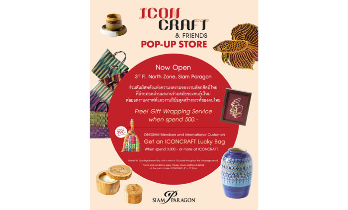 ไอคอนคราฟต์ (ICONCRAFT) พื้นที่แห่งแรงบันดาลใจ แหล่งรวมงานคราฟต์สร้างสรรค์จากช่างฝีมือไทยที่ใหญ่ที่สุด สานต่อความตั้งใจในการผลักดัน Local Heroes สู่ Global Heroes ส่งเสริมงานหัตถกรรมไทยร่วมสมัยให้กาวสู่ตลาดสากล ขยายแรงบันดาลใจแห่งงานฝีมือไทยสู่พื้นที่ใหม่ เปิด Pop-up Store ภายใต้คอนเซ็ปต์ “ICONCRAFT & FRIENDS” พื้นที่ที่ความคิดสร้างสรรค์มาบรรจบกับความเอื้อเฟื้อ นำแบรนด์คราฟต์จากทั่วประเทศ มาเผยเสน่ห์หัตถศิลป์ไทยในมุมมองร่วมสมัยสู่สายตาโลก ณ ชั้น 3 สยามพารากอน