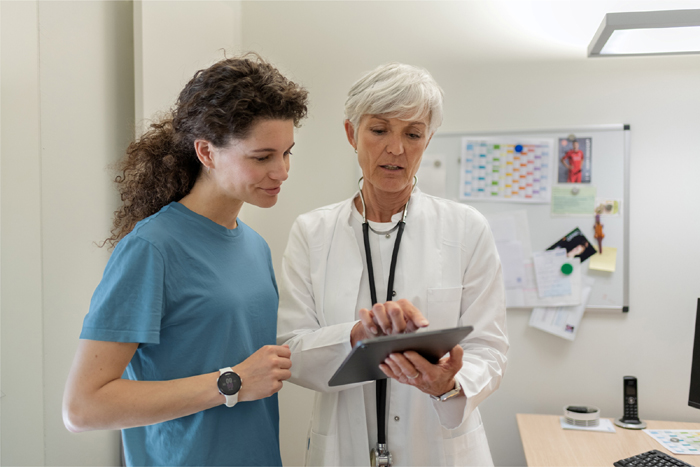งานวิจัยทางการแพทย์ชี้ว่า ในระยะเริ่มต้นของโรคเบาหวานชนิดที่ 2 การควบคุมอาหาร ออกกำลังกายสม่ำเสมอ และควบคุมน้ำหนักสามารถนำไปสู่ภาวะ ‘การทุเลาของโรค’ ได้1 กล่าวคือ ระดับน้ำตาลในเลือดกลับมาอยู่ในเกณฑ์ปกติโดยไม่ต้องใช้ยา อุปกรณ์สวมใส่อัจฉริยะ เช่น สมาร์ทวอทช์และสายรัดข้อมือสุขภาพ จึงมีบทบาทสำคัญในการสนับสนุนทั้งสามด้าน ได้แก่