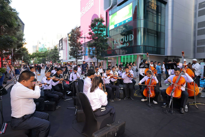 บรรยากาศภายในงานบริเวณหน้าอาคาร AIS SIAM และตลอดเส้นทาง SIAM Walking Street เต็มเปี่ยมไปด้วยความซาบซึ้ง และความสง่างาม จากการแสดงดนตรีไทยโดยคณะครุศาสตร์ จุฬาลงกรณ์มหาวิทยาลัย รวมถึงกิจกรรมแสดงความอาลัยรูปแบบพิเศษผ่านอักษรเบรลล์สำหรับผู้พิการ พร้อมส่งต่อคำไว้อาลัยขึ้นจอกลางสยาม นอกจากนี้ยังมีการบรรเลง–ขับร้องบทเพลง “แม่แห่งแผ่นดิน” โดยวงออร์เคสตร้าคนตาบอดแห่งประเทศไทย นับว่าสะท้อนถึงพลังแห่งความจงรักภักดี และความร่วมมือของทุกคนในสังคม ที่มุ่งมั่นสร้างพื้นที่แห่งความเท่าเทียมร่วมกัน