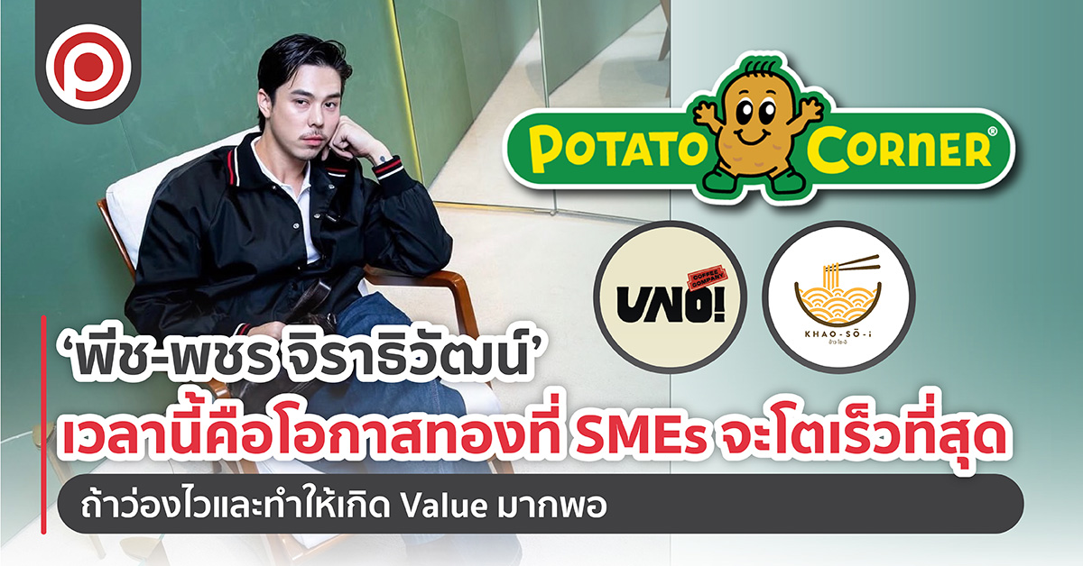 ไม่บ่อยนักที่ ‘พีช-พชร จิราธิวัฒน์’ จะขึ้นมาแชร์มุมมองในฐานะผู้ก่อตั้งบริษัท ร็อคส์ พีซี จำกัด ที่พา Potato Corner ในไทยเติบโตได้เร็วมาก ยังไม่รวม UNO Coffee และข้าวโซอิ ซึ่งขณะที่หลายคนกำลังบ่นและกังวลเรื่องสภาพเศรฐกิจ เขากลับบอกว่า เวลานี้คือโอกาสทองที่ SMEs จะสามารถโตได้อย่างเร็ว ถ้าว่องไวและพยายามทำให้เกิด Value มากพอ