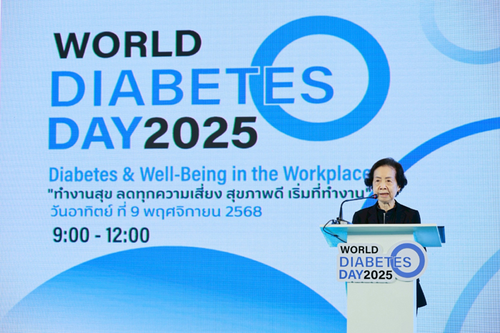 สมาคมโรคเบาหวานแห่งประเทศไทย ในพระราชูปถัมภ์ฯ ร่วมกับ จุฬาลงกรณ์มหาวิทยาลัย กระทรวงสาธารณสุข สำนักงานกองทุนสนับสนุนการสร้างเสริมสุขภาพ (สสส.) และภาคีเครือข่าย ด้านสุขภาพ จัดกิจกรรม “วันเบาหวานโลก ประจำปี 2568 (World Diabetes Day 2025)” ภายใต้แนวคิด “Diabetes and Well-being: Creating Healthy Workplaces for All” หรือ “สุขภาพดี เริ่มที่ทำงาน” ณ อาคาร Siam Scape ชั้น 1 และ ชั้น 9 เพื่อสร้างความตระหนักรู้ถึง ความสัมพันธ์ระหว่าง “สุขภาพ” และ “ชีวิตการทำงาน” พร้อมรณรงค์ให้สถานที่ทำงานทั่วประเทศกลายเป็น “พื้นที่สุขภาวะ” ที่ส่งเสริมคุณภาพชีวิต ของคนไทยทุกคน