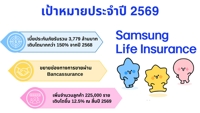 บริษัท ซัมซุง ประกันชีวิต (ประเทศไทย) จำกัด (มหาชน) ดำเนินธุรกิจให้บริการเกี่ยวกับผลิตภัณฑ์ด้านการประกันชีวิตและการเงิน ที่มุ่งเน้นให้ลูกค้าได้รับผลประโยชน์และความพึงพอใจสูงสุดเป็นเวลากว่า 28 ปี ปัจจุบันบริษัทฯ ก้าวเข้าสู่ปีที่ 29 ภายใต้แนวคิด A New Beginning, Greater Future. พร้อมเปิดกลยุทธ์ 4P+2C ขับเคลื่อนธุรกิจ มุ่งยกระดับบริการและการดำเนินงานเพื่อขับเคลื่อนบริษัทฯ ให้เติบโตอย่างมั่นคงและยั่งยืน วางเป้าหมายปี 2569 ยอดขายเพิ่มขึ้น 3,779 ล้านบาท เติบโตมากกว่า 150%