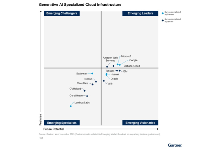ในปีที่ผ่านมา อาลีบาบา คลาวด์ ได้รับการจัดอันดับให้เป็น Emerging Leader ในทั้งสี่ quadrant ที่ได้รับการประเมินในรายงาน Gartner® “Innovation Guide for Generative AI Technologies” ฉบับก่อนหน้า