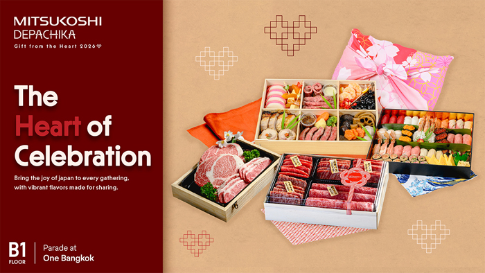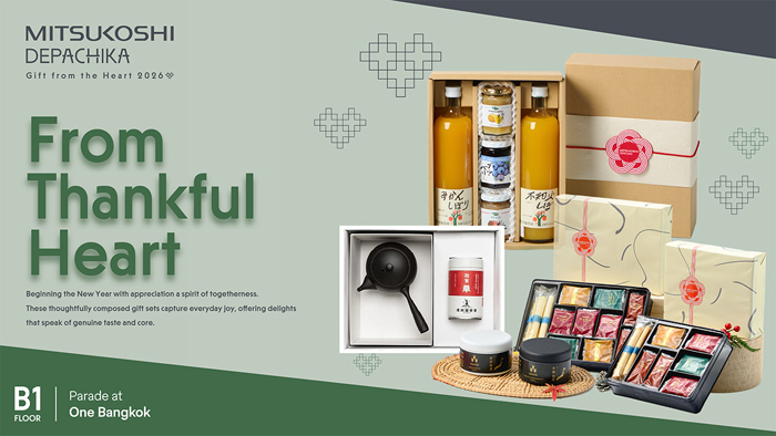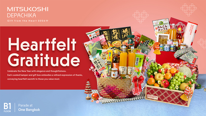 มิตซูโคชิ เดปาจิกะ ซูเปอร์มาร์เก็ต-ฟู้ดฮอลล์ (Mitsukoshi Depachika) ศูนย์รวมอาหารและโกรเซอรีระดับพรีเมียมตามแบบฉบับของซูเปอร์มาร์เก็ตและฟู้ดฮอลล์ในห้างสรรพสินค้าชั้นนําของญี่ปุ่น สาขาแรกของประเทศไทยในโครงการ วัน แบงค็อก ขอเชิญชวนทุกท่านร่วมเฉลิมฉลองเทศกาลแห่งความสุข ส่งต่อความปรารถนาดี และมอบคำขอบคุณเพื่อต้อนรับศักราชใหม่ปี 2569 ด้วยคอลเลคชันกระเช้าของขวัญปีใหม่สุดเอ็กซ์คลูซีฟ “New Year Hamper – GIFT FROM THE HEART” ครั้งแรกในประเทศไทย ที่ผสมผสานวัฒนธรรมการให้ของขวัญสไตล์ญี่ปุ่นต้นตำรับ ซึ่งเต็มไปด้วยจิตวิญญาณแห่งการให้ที่เปี่ยมความหมาย (Omotenashi) ผ่านการบริการที่มาจากใจและใส่ใจในทุกรายละเอียด เข้ากับสินค้าคุณภาพดีที่คัดสรรมาอย่างพิถีพิถัน เพื่อเติมเต็มความสุข ส่งต่อความรักความห่วงใย และคำขอบคุณจากผู้ให้สู่คนพิเศษ เริ่มจำหน่ายตั้งแต่วันนี้ถึงวันที่ 7 มกราคม 2569 ณ มิตซูโคชิ เดปาจิกะ โซน Gift Corner ชั้น B1 ตึกพาเหรด โครงการวัน แบงค็อก