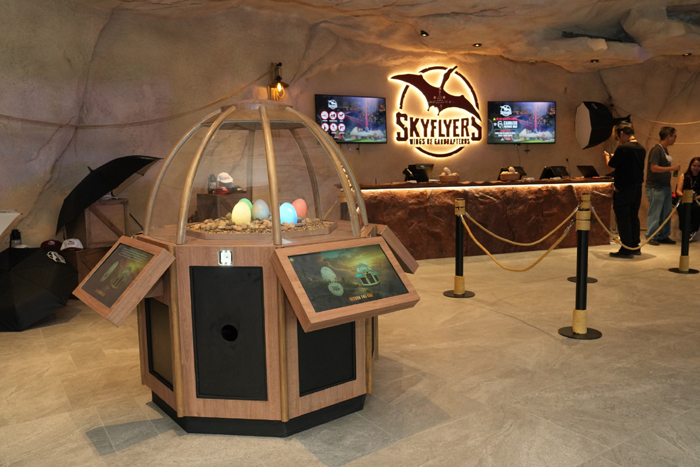 เริ่มต้นการเดินทางที่ Ticket Lounge ซึ่งจำลองบรรยากาศของพื้นที่แหล่งขุดค้นทางบรรพชีวินวิทยา ด้วยพื้นผิว ที่มีสัมผัสคล้ายชั้นดินยุคโบราณ และห้องจัดแสดงฟอซซิลที่เป็นความร่วมมือกับกรมทรัพยากรธรณี กระทรวงทรัพยากรธรรมชาติและสิ่งแวดล้อม จากนั้นก้าวเข้าสู่โซนประสบการณ์แบบ Interactive ที่เปิดโลกจินตนาการของเด็ก ๆ สู่บทบาทของนักบรรพชีวินวิทยารุ่นเยาว์ ผ่าน “Egg Ticket” ซึ่งเมื่อสแกนแล้วจะเห็นลูกการูแดปเทอรัสตัวน้อยที่กำลังฟักตัว ก่อนกะเทาะเปลือกไข่มาปรากฏบนหน้าจอ โดยสามารถตั้งชื่อให้เจ้าตัวน้อยที่พร้อมโผบินร่วมผจญภัยไปกับพวกเขา องค์ประกอบต่าง ๆ เป็นส่วนหนึ่งของเรื่องราวซึ่งช่วยให้เด็ก ๆ ได้เปิดประตูสู่ความรู้พื้นฐานด้านวิวัฒนาการ การอ่านร่องรอยซากฟอสซิล และการต่อยอดจินตนาการทางวิทยาศาสตร์ ผ่านการเรียนรู้ที่สนุกสนานในรูปแบบของ play-based learning