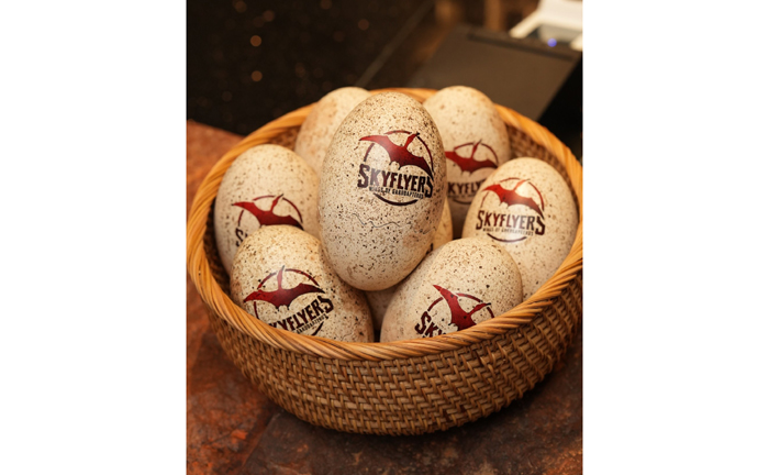 Skyflyers ได้รับแรงบันดาลใจจาก “การูแดปเทอรัส” เทอโรซอร์สกุลพันธุ์ใหม่ของโลกที่นักบรรพชีวินวิทยาไทย ค้นพบเมื่อต้นปีที่ผ่านมา ซึ่งหมายถึง “ปีกของครุฑ” โดยครุฑเป็นสัญลักษณ์ของพลังและความกล้าหาญ การค้นพบซากดึกดำบรรพ์ครั้งสำคัญนี้ เป็นจุดเริ่มต้นของการสร้างประสบการณ์ใหม่ให้เกิดขึ้น ซึ่งพื้นที่ต่าง ๆ ของ Skyflyers ถ่ายทอดบรรยากาศยุคดึกดำบรรพ์ อาทิ หน้าผาหินสูงชัน ชั้นดินเก่าแก่ พื้นที่วางไข่ของสัตว์ดึกดำบรรพ์ ผืนป่าที่มีระบบนิเวศคล้ายโอเอซิส ตลอดจนรอยเท้าฟอสซิลที่หลงเหลือ เป็นเรื่องราวของของการเดินทางที่ น่าตื่นตา ปลุกความสนใจให้กับผู้ชมทุกวัย โดยการออกแบบดังกล่าวได้รับการสนับสนุนด้านวิชาการผ่านความร่วมมือกับศูนย์วิจัยและการศึกษาบรรพชีวินวิทยา มหาวิทยาลัยมหาสารคาม สถาบันผู้อยู่เบื้องหลังการค้นพบครั้งสำคัญ นอกจากนี้ความเชื่อมโยงกับครุฑยังเพิ่มมิติทางวัฒนธรรมให้แก่ประสบการณ์นี้ ผ่านมุมมองพาโนรามา 360 องศาบนท้องฟ้า สะท้อนถึงความงดงามของประเทศไทยและความสำคัญของความก้าวหน้าทางวิทยาศาสตร์ครั้งนี้