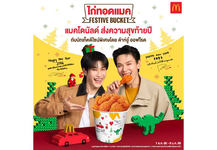 เตรียมสะสมบักเก็ตดีไซน์โดย ‘ต้าห์อู๋ x ออฟโรด’ และสติกเกอร์สุดคิวท์ ได้แล้ววันนี้ ทั้ง ‘บักเก็ตสุขเต็มถัง’ เพียงชุดละ 299 บาท และ ‘บักเก็ตปาร์ตี้ฟินเวอร์’ ราคาชุดละ 399 บาท ตั้งแต่วันนี้ – 6 มกราคม 2569 ที่ร้านแมคโดนัลด์ ทุกสาขาที่ร่วมรายการ, แมคไดร์ฟ ทรู และแมคดิลิเวอรี โทร.1711, เว็บไซต์ www.mcdonalds.co.th ติดตามรายละเอียดเพิ่มเติมได้ที่ Facebook.com/McThai
