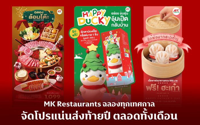MK Restaurants พร้อมร่วมเป็นส่วนหนึ่งของประสบการณ์การรับประทานอาหารที่อบอุ่นและมีความหมายให้กับลูกค้าทุกคน และเชิญชวนทุกครอบครัวมาร่วมสร้างช่วงเวลาและความทรงจำสุดประทับใจในช่วงสิ้นปีนี้ไปด้วยกันที่ MK Restaurants ทุกสาขาทั่วประเทศ