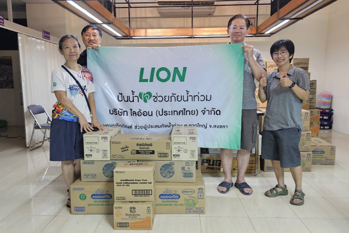 บริษัท ไลอ้อน (ประเทศไทย) จำกัด ผู้ผลิตและจำหน่ายสินค้าอุปโภคบริโภคเพื่อคนไทยมายาวนานตลอด 56 ปี ขอเป็นส่วนหนึ่งในการส่งต่อพลังใจและการสนับสนุนอย่างเร่งด่วนสู่พี่น้องชาวใต้ โดยร่วมมือกับ 4 หน่วยงานสำคัญ ได้แก่ กรมอนามัย, สภาอุตสาหกรรมแห่งประเทศไทย, มหาวิทยาลัยสงขลานครินทร์ (ม.อ.), และ เครือสหพัฒน์ เพื่อช่วยเหลือประชาชนและสนับสนุนการปฏิบัติงานของเจ้าหน้าที่ในพื้นที่อย่างครบด้าน