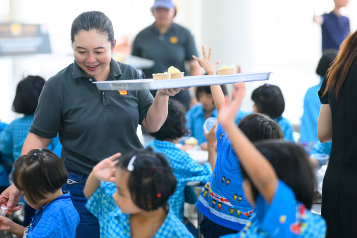 กิจกรรมในปีนี้ เปปเปอร์ ลันช์ ได้ร่วมส่งต่อความสุขผ่าน “มื้อร้อนแห่งรอยยิ้ม” จัดเลี้ยงอาหารกลางวัน และมอบวัตถุดิบคุณภาพดีให้กับสถานสงเคราะห์เด็กหญิงบ้านราชวิถี นำทีมโดยคุณเมษยา ชิ้นอาภรณ์, Head of Pepper Lunch พาทีมพนักงานร่วมแรงร่วมใจ ลงมือปรุงและเสิร์ฟอาหารด้วยความอบอุ่นจากใจ เพื่อให้น้อง ๆ ได้อิ่มท้องและอิ่มใจไปพร้อมกัน เมนูที่จัดเตรียมให้ในวันนั้น ได้แก่ ข้าวผัดเปปเปอร์, เฟรนช์ฟรายส์บาร์บีคิว, และไส้กรอกไก่ ซึ่งทุกจานล้วนเปี่ยมด้วยความตั้งใจและความห่วงใยจากครอบครัวเปปเปอร์ ลันช์ นอกจากนี้ ยังได้ร่วมบริจาควัตถุดิบคุณภาพดี ได้แก่ เบคอนรมควัน และไอศกรีม เพื่อให้น้อง ๆ ได้อิ่มเอมกับรสชาติแห่งความสุขต่อเนื่องในทุกมื้อ