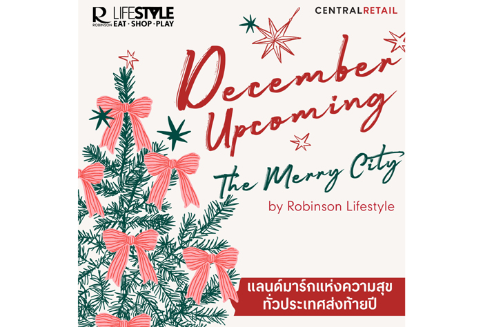 ตลอดเดือนธันวาคมนี้ โรบินสันไลฟ์สไตล์พร้อมเปลี่ยนทุกสาขาทั่วประเทศให้กลายเป็น “The Merry City” เมืองแห่งความสุขส่งท้ายปี ที่เต็มไปด้วยสีสันของเทศกาลและกิจกรรมพิเศษมากมายสำหรับทุกคนในครอบครัว ได้แก่