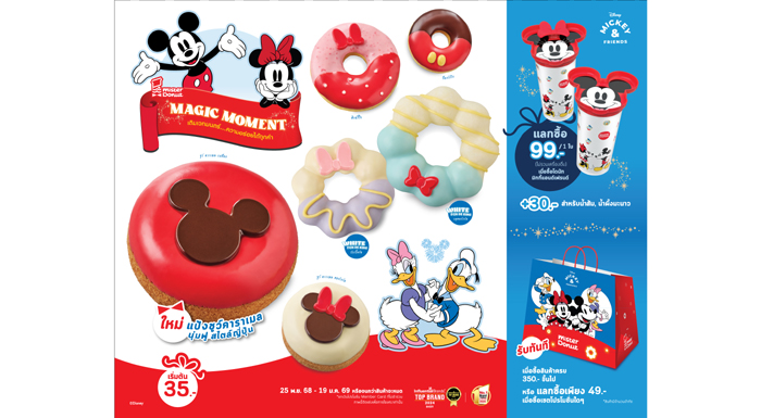 มิสเตอร์ โดนัท (Mister Donut) แบรนด์โดนัทขวัญใจคนไทยกว่า 40 ปี และผู้นำตลาดโดนัทอันดับ 1 ของประเทศไทย ภายใต้การบริหารของบริษัท เซ็นทรัล เรสตอรองส์ กรุ๊ป จำกัด (ซีอาร์จี) เปิดตัวคอลเลกชันใหม่ล่าสุด “Mickey & Friends” เติมเวทมนต์ความอร่อยในทุกคำ ผ่านโดนัทดีไซน์สุดคิวท์จากคาแรคเตอร์ดิสนีย์ที่ใครก็หลงรัก ถ่ายทอดความสดใส น่ารัก และรสชาติที่อร่อยลงตัว สร้างรอยยิ้มตั้งแต่คำแรก เสริมภาพแบรนด์ที่เป็นทั้งผู้นำด้านรสชาติและผู้นำในการสร้าง Brand Experience ตอบโจทย์ไลฟ์สไตล์ของผู้บริโภคยุคใหม่ที่มองหาสินค้าที่ทั้งอร่อย มีเรื่องราว และสร้างความสุขเล็ก ๆ ให้กับตัวเองในทุกวัน