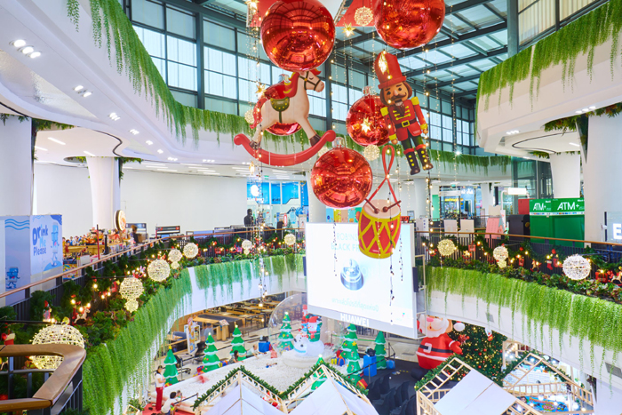 และเมื่อก้าวเข้ามาสู่ภายในศูนย์ พบกับความตระการตาของการตกแต่งสไตล์ Christmas Market สร้างบรรยากาศแห่งความสุขในช่วงเทศกาลได้เป็นอย่างดีต้นคริสต์มาสสูงเด่นกลางโถง 6 เมตร และThe Merry Starlight การตกแต่งแบบลอยตัวบริเวณระเบียงภายในศูนย์การค้าฯ ที่มาพร้อมดีไซน์ลูกบอลหลากสีและโมเดลคริสต์มาสขนาดยักษ์ลอยเหนือศีรษะ สร้างบรรยากาศสนุกและสดใสในทุกมุมมอง