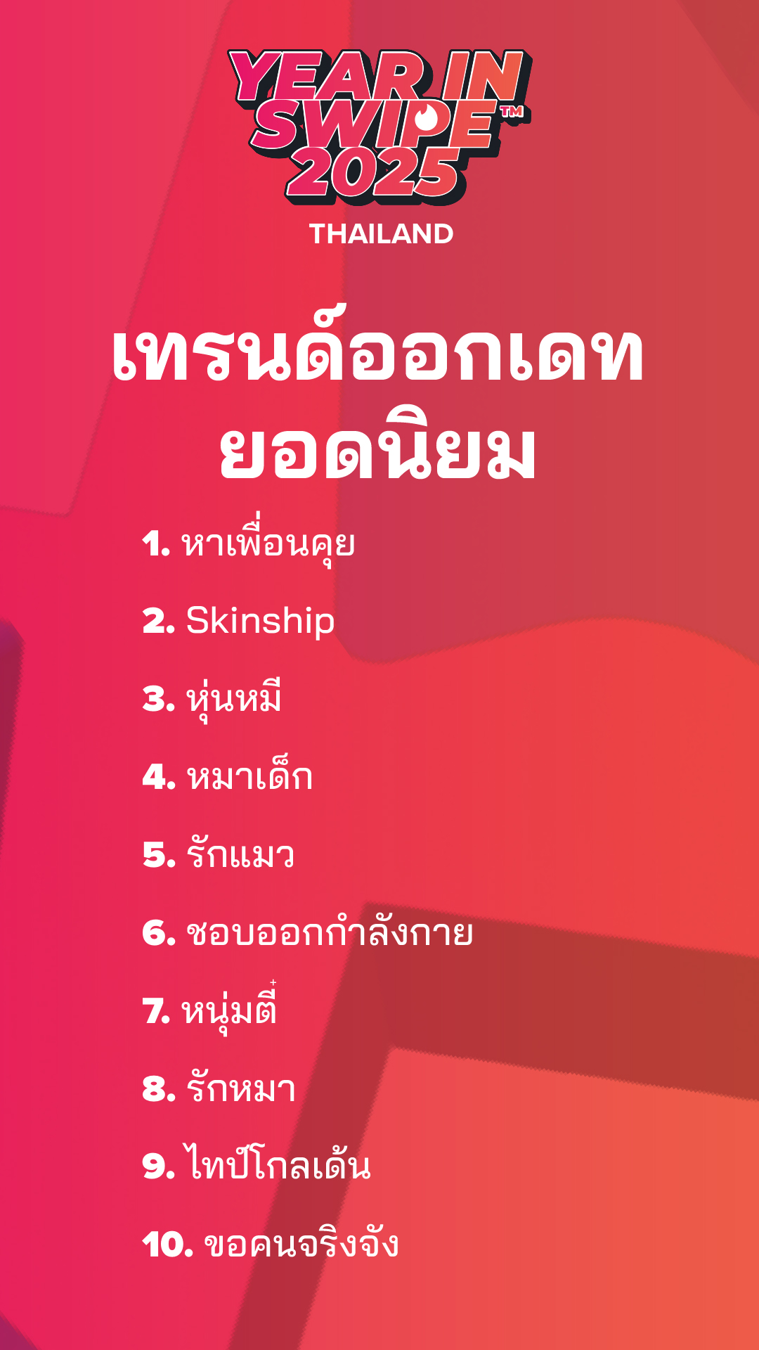 56% ให้ความสำคัญกับบทสนทนาที่จริงใจมากที่สุด 45% ต้องการความเห็นอกเห็นใจมากขึ้นหลังจากโดนปฏิเสธ และคำที่ใช้นิยามการเดทปี 2569 มากที่สุดคือ มีความหวัง เรียกได้ว่า ความหวังเป็นสิ่งที่กำลังมาแรง และคนโสดก็ไม่กลัวที่จะแสดงออกมา!