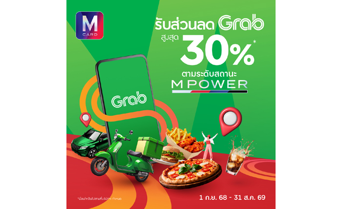 ทั้งนี้ สิทธิพิเศษสำหรับลูกค้าสมาชิก M Card จะสามารถใช้ได้ตั้งแต่วันที่ 1 สิงหาคม 2568 – 31 สิงหาคม 2569 ผ่านทาง M Card Application และแอปพลิเคชัน Grab โดยสามารถรับส่วนลด 30% สำหรับการเดินทางเมื่อใช้บริการ GrabCarPremium, GrabSUV และ GrabExecutive พร้อมทั้งส่วนลด 15% สำหรับบริการ GrabFood, GrabFood Self-PickUp และ Grab Dine-Out รวมถึงสิทธิ์ทดลองใช้ GrabUnlimited สูงสุดนาน 9 เดือน