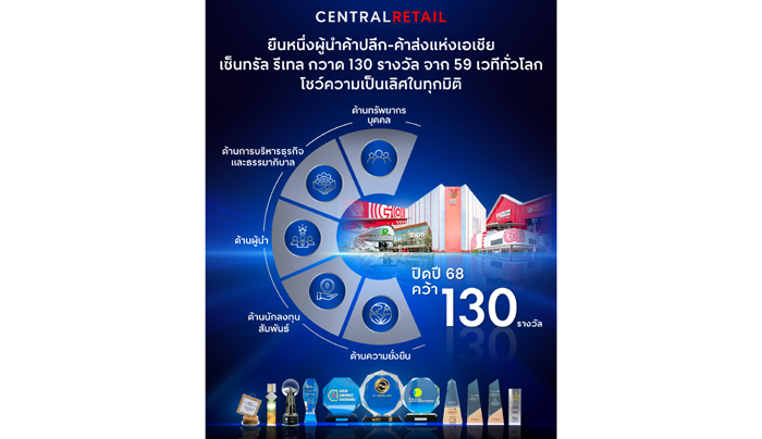 เซ็นทรัล รีเทล คอร์ปอเรชั่น จำกัด (มหาชน) หรือ CRC และธุรกิจในเครือ ตอกย้ำความเป็นผู้นำธุรกิจค้าปลีก-ค้าส่งแห่งเอเชียที่มีความแข็งแกร่งใน 5 ด้านหลัก ได้แก่ ด้านทรัพยากรบุคคล, ด้านการบริหารธุรกิจและธรรมาภิบาล, ด้านความยั่งยืน, ด้านผู้นำโดดเด่น และด้านนักลงทุนสัมพันธ์ โดยประสบความสำเร็จด้วยการคว้ารางวัลตลอดปี 2568 รวม 130 รางวัล จาก 59 เวทีทั้งในประเทศและต่างประเทศ อันเป็นผลมาจากการขับเคลื่อนธุรกิจด้วยกลยุทธ์ ‘New Heights, Next Growth’ และเดินหน้าสร้างความยั่งยืนให้เติบโตในทุกภาคส่วน ภายใต้ปรัชญา CRC Care ทั้ง 7 มิติ โดยรางวัลแห่งความสำเร็จแบ่งเป็น 5 ด้านสำคัญ ดังนี้