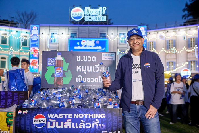 นายทานุจ ชาดา ประธานเจ้าหน้าที่บริหาร บริษัท ซันโทรี่ เป๊ปซี่โค เบเวอเรจ (ประเทศไทย) จำกัด กล่าวว่า “ซัน โทรี่ เป๊ปซี่โค ประเทศไทย มุ่งมั่นยกระดับการจัดการบรรจุภัณฑ์อย่างยั่งยืน ผ่านหลักการขยายความรับผิดชอบไปยังผู้ผลิต (Extended Producer Responsibility: EPR) สนับสนุนระบบจัดการที่มีประสิทธิภาพและยั่งยืน เราให้ความสำคัญกับผู้บริโภค สังคม และสิ่งแวดล้อมควบคู่กับการดำเนินธุรกิจ พร้อมตั้งเป้าหมายเป็นองค์กรแห่งความยั่งยืนในทุกมิติ ตามค่านิยม ‘การเติบโตอย่างยั่งยืน’ (Growing for Good) เราต่อยอดแนวทางนี้ผ่านแคมเปญ “Waste Nothing – มันส์ แล้ว ทิ้ง” ในเทศกาลดนตรีและกิจกรรมที่แบรนด์เป๊ปซี่สนับสนุน โดยร่วมมือกับหลายภาคส่วนเพื่อสร้างการมีส่วนร่วมของผู้บริโภค มุ่งเน้นการคัดแยกขยะตั้งแต่ต้นทาง โดยเฉพาะการเก็บกลับขวด PET ใส ไม่มีสี เข้าสู่กระบวนการรีไซเคิลเพื่อผลิตเป็นขวดใหม่ (Bottle-to-Bottle Recycling)”