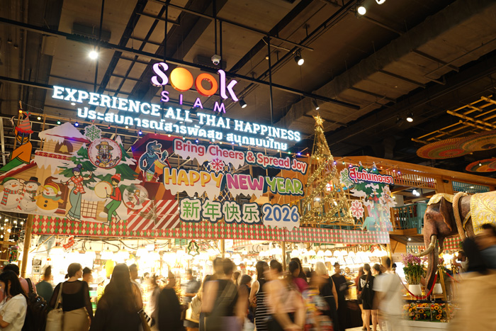 “เมืองสุขสยาม” ณ ไอคอนสยาม ชั้น G เมืองสารพัดสุข สนุกแบบไทย ต้อนรับเทศกาลแห่งความสุขและการฉลองเข้าสู่ศักราชใหม่ด้วยเสน่ห์แบบไทยๆ จัดงาน “SOOKSIAM สุขกันเถอะเรา” สัมผัสประสบการณ์ด้านศิลปวัฒนธรรมไทยอันหลากหลาย และกิจกรรมเติมเต็มความสุขมากมาย พร้อมคัดสรรของขวัญของฝากจากงานหัตถศิลป์พื้นบ้านไทยคุณภาพ เพื่อส่งต่อความสุขให้คนพิเศษ ทั้งชาวไทยและชาวต่างชาติ ภายใต้บรรยากาศรื่นเริงแบบไทย ตั้งแต่ วันนี้ – 7 มกราคม 2569