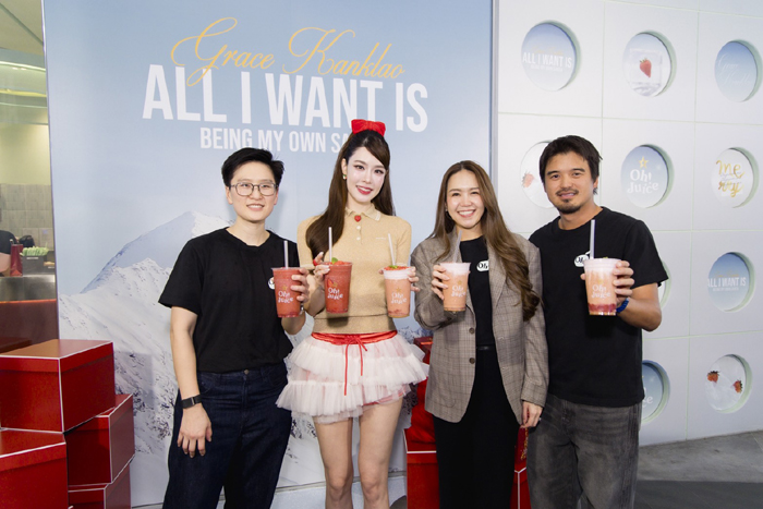 “การเติบโตของ Oh! Juice สะท้อนให้เห็นถึงการเปลี่ยนแปลงพฤติกรรมผู้บริโภคที่ให้ความสำคัญกับสุขภาพมากขึ้น เรามุ่งสร้างไลฟ์สไตล์ใหม่ที่ผู้หญิงยุคนี้สามารถดูแลตัวเองได้อย่างยั่งยืนและมีความสุข แคมเปญ ‘All I Want is Being My Own Santa’ ร่วมกับเกรซ กาญจน์เกล้า เป็นการสื่อสารว่า ของขวัญที่ดีที่สุดคือการตัดสินใจที่จะดูแลตัวเองอย่างจริงจัง ด้วยสิ่งที่ดี ทั้งเรื่องวัตถุดิบธรรมชาติและคุณค่าทางโภชนาการที่ตอบโจทย์ Functional Wellness และที่สำคัญ อร่อย”
