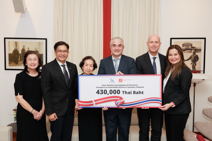 บริษัท โนโว นอร์ดิสค์ ฟาร์มา (ประเทศไทย) จำกัด (“โนโว นอร์ดิสค์”) และสถานเอกอัครราชทูตเดนมาร์กประจำประเทศไทย บริจาคเงินจำนวน 430,000 บาท (ประมาณ 86,000 โครนเดนมาร์ก) แก่สมาคมโรคเบาหวานแห่งประเทศไทยฯ เพื่อสนับสนุนการบรรเทาทุกข์หลังเหตุอุทกภัยครั้งใหญ่ทางภาคใต้ของประเทศไทย