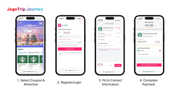 • สมัครหรือซื้อผ่านช่องทางการขายอื่น ๆ – เมื่อลูกค้าสมัครแพ็กเกจเน็ตต่างประเทศ GO Travel ราคา 299 บาทขึ้นไป หรือซื้อซิมเน็ตต่างประเทศ GO Travel SIM, GO Travel MyPlan eSIM จากนั้น ลูกค้าทรู กด USSD *868*3903# โทรออก , ลูกค้าดีแทค กด USSD *399*3903# โทรออก เมื่อทำรายการสำเร็จ ลูกค้าจะได้รับ SMS พร้อมลิงก์สำหรับเข้าสู่ JegoTrip เพื่อเลือกรับสิทธิพิเศษและส่วนลดจาก JegoTrip ที่ใช้ได้ในประเทศจีน