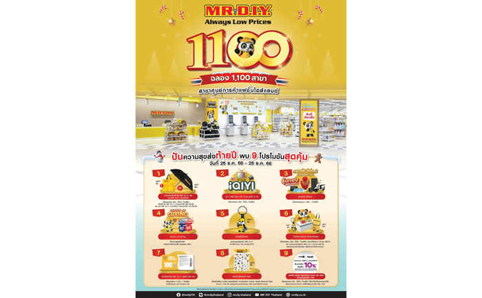 มิสเตอร์. ดี.ไอ.วาย. ผู้นำธุรกิจค้าปลีกอุปกรณ์ตกแต่งบ้านและสินค้าไลฟ์สไตล์ เดินหน้าสร้างหมุดหมายสำคัญส่งท้ายปีด้วยการเปิด สาขาที่ 1,100 ณ ศูนย์การค้าแฟชั่นไอส์แลนด์ หนึ่งในศูนย์การค้าชั้นนำย่านกรุงเทพฯ ตะวันออก สะท้อนการเติบโตอย่างต่อเนื่องและความไว้วางใจจากลูกค้าทั่วประเทศ พร้อมยกระดับประสบการณ์การชอปปิงให้ดียิ่งขึ้น ในโอกาสพิเศษนี้ มิสเตอร์. ดี.ไอ.วาย. จัดกิจกรรม “ฉลอง 1,100 สาขา” ควบคู่กับแคมเปญใหญ่ส่งท้ายปี “Season of Giving ปันความสุขส่งท้ายปี” ชวนลูกค้าร่วมชอปสินค้าของขวัญในราคาสุดคุ้ม ถูกดี ช่วยประหยัดเกินครึ่ง ลดสูงสุด 55% พร้อมร่วมสนุกกับกิจกรรมและโปรโมชันพิเศษแบบจัดเต็มตลอด 3 วัน ระหว่างวันที่ 26 – 28 ธันวาคม 2568 ณ ร้านมิสเตอร์. ดี.ไอ.วาย. สาขาศูนย์การค้าแฟชั่นไอส์แลนด์ ชั้น 3