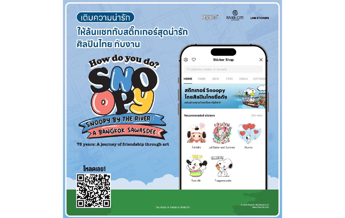 คอลเลกชัน LINE STICKERS พิเศษในโปรเจกต์ “How Do You Do, Snoopy? 75 Years: A Journey of Friendship Through Art” เป็นการนำเสนอคาแรกเตอร์ Snoopy ในมุมมองใหม่ผ่านลายเส้นอันเป็นเอกลักษณ์ของ 5 ศิลปินไทยชื่อดัง ได้แก่ FAHFAHS เจ้าของคาแรกเตอร์เด็กผู้หญิงตาโตในโทนสีพาสเทลอ่อนโยนสุดอบอุ่น, Tum Ulit ศิลปินผู้ถ่ายทอดสไตล์ผลงานที่น่ารัก เรียบง่าย ในรูปแบบสีหม่น ๆ สื่อถึงความเหงาและความเปราะบาง, Juli Baker and Summer กับงานเพนต์ลายเส้นอิสระที่โดดเด่นด้านการใช้สีสันสดใสเต็มไปด้วยพลังบวก, Tuagomstudio เจ้าของคาแรกเตอร์ “ตัวกลม” ที่ดูเป็นมิตรกับทุกคน และ Munins ผู้ถ่ายทอดความนุ่มละมุนในสไตล์มินิมัลที่ลึกซึ้งกินใจ