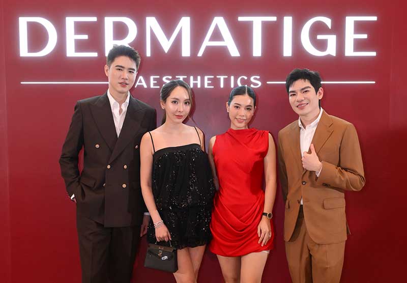 สำหรับไฮไลต์ของงาน ‘A NIGHT TO CELEBRATE WITH DERMATIGE Merry Christmas and Happy New Year 2026’ ผู้บริหารและผู้ก่อตั้ง Dermatige Aesthetics นำโดย นายแพทย์ณัฐณกัณฑ์ พิชยะวงศ์ภัค (หมอกลาง), นายแพทย์ภาณุพงศ์ ภัทรกุลทวี (หมอต่อ) และ คุณเขมณัฏฐ์ ชุลีเกียรติ (ยาย่า) ยังได้มอบที่สุดแห่งความเอ็กซ์คลูซีฟ เปิดตัว DERMATIGE MEMBER CARD เพื่อยกระดับสิทธิประโยชน์และการดูแลอย่างต่อเนื่อง ตลอดจนเผยถึงทิศทาง การเติบโตในปี 2026 ด้วยแผนเปิดสาขาที่ 6 ณ เซ็นทรัล บางนา ชั้น 3 ยืนหนึ่งจากความเชี่ยวชาญด้านการยกกระชับ และปรับรูปหน้าในฐานะผู้ริเริ่มโปรแกรม ‘หน้ายุง’ ที่เป็นที่รู้จักอย่างกว้างขวาง โดยมีพันธมิตร พาร์ทเนอร์ ลูกค้า และเซเลบริตี้ อาทิ ‘คุณปรางค์’ อภินรา ศรีกาญจนา นักธุรกิจหญิงเก่งทายาทตระกูลศรีกาญจนา เจ้าของเอเซียประกันภัย ผู้บริหารร่วมก่อตั้ง U drink I drive , Apinara Jewellery และทำธุรกิจร้านอาหาร Nara มาพร้อมน้องสาว ‘คุณพลอย’ พลอยพยัพ ศรีกาญจนา เซเลบริตี้สาวสวยและนักธุรกิจรุ่นใหม่ จบจาก London College of Fashion, ‘คุณหมิว’ กมลพร วงศ์รักมิตร ทายาทนครชัยแอร์, ‘คุณจินนี่’ เอมษิกา โชติวิจิตร สาวสังคมคนดัง บริหารธุรกิจอสังหาริมทรัพย์ และ การ์เมนต์ของครอบครัว, ‘คุณแนน’ ปิยะดา จิระพจชพร นักแสดง พิธีกรชาวไทยและดูแลธุรกิจครอบครัว, ‘คุณเอย’ ธัญวรรณ เทพหัสดิน ณ อยุธยา เซเลบริตี้สาวสวยที่เอาอยู่ในทุกๆ สไตล์การแต่งตัว เป็นไอคอนนิคของสาวๆ มาร่วมเติมเต็มบรรยากาศให้พิเศษยิ่งขึ้น ที่ร้าน CINCIN – Brunch