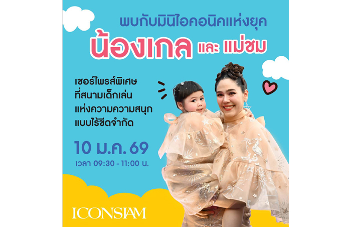 ไอคอนสยาม แลนด์มาร์กระดับโลกริมแม่น้ำเจ้าพระยา จับมือ B.Duck คาแรกเตอร์เป็ดน้อยสุด ไอคอนิกจากฮ่องกง และ องค์การพิพิธภัณฑ์วิทยาศาสตร์แห่งชาติ (อพวช.) พร้อมด้วยพันธมิตร ชวนทุกครอบครัวร่วมเปิดประสบการณ์ความสนุกครั้งใหญ่ต้อนรับวันเด็กแห่งชาติ ในงาน “The Iconic Children’s Playground 2026: Funtastic Playland” เนรมิตพื้นที่ทั่วไอคอนสยามและไอซีเอส ให้กลายเป็นเพลย์แลนด์แห่งการเรียนรู้และจินตนาการ เปิดประตูให้เด็กๆ ได้ก้าวสู่โลกแห่งความสนุก ความคิดสร้างสรรค์ และแรงบันดาลใจอย่างไร้ขอบเขต ระหว่างวันที่ 7-11 มกราคม 2569 จัดเต็มไฮไลต์มากมาย โดยมี น้องเกล – แอบิเกล รังษีสิงห์พิพัฒน์ และ คุณแม่ชมพู่ – อารยา เอฮาร์เก็ต มาร่วมเปิดโลกแห่งความสนุก ในวันที่ 10 มกราคม 2569 เวลา 9.30 – 11.00 น. ณ ริเวอร์ พาร์ค ไอคอนสยาม