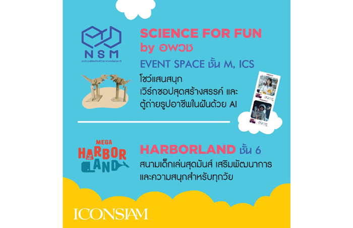 มาเรียนรู้ควบคู่กับความสนุกไปกับ “SCIENCE FOR FUN” หลากหลายกิจกรรมเชิงวิทยาศาสตร์ที่สร้างสรรค์โดย องค์การพิพิธภัณฑ์วิทยาศาสตร์แห่งชาติ (อพวช.) ทั้ง “Bozo Science Show” เวทีความรู้ด้านวิทยาศาสตร์ที่เปิดโอกาสให้เด็ก ๆ ได้ร่วมทดลองทางวิทยาศาสตร์ไปกับตัวตลกโบโซ่ จัดเต็มทั้งสาระและเสียงหัวเราะไปพร้อมกันทุกวันตลอดงาน วันละ 3 รอบ เวลา 11.00 น., 14.00 น. และ 17.00 น. นอกจากนี้ยังมี Workshop “SCIENCE FOR FUN” กิจกรรมแสนสนุกที่ให้น้อง ๆ ได้ลงมือสรรค์ผลงานด้วยตัวเอง พร้อมเรียนรู้หลักวิทยาศาสตร์แบบเข้าใจง่าย แถมได้ของน่ารัก ๆ กลับบ้าน จัดวันละ 2 รอบ เวลา 12.00-13.30 น. และ 15.00-16.30 น. และที่พลาดไม่ได้คือ “AI Photo Booth จุดประกายอาชีพในฝัน” ที่เด็ก ๆ เลือกอาชีพในฝัน ไม่ว่าจะเป็น นักบินอวกาศ นักวิทยาศาสตร์ คุณหมอ ศิลปิน นักบิน คุณครู ฯลฯ แล้วให้ AI ช่วยสร้างภาพของน้อง ๆ ในบทบาทนั้น ๆ เพื่อเก็บไว้เป็นที่ระลึกและสร้างแรงบันดาลใจให้เดินตามฝันในอนาคต โดยทุกกิจกรรมเปิดให้ร่วมสนุกระหว่างวันที่ 7-11 มกราคม 2569 ณ EVENT SPACE ชั้น M, ICS